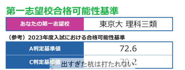 偏差値が79なので、第一志望は理ⅢA判定。