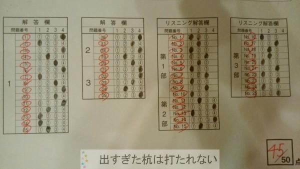 英検3級予想問題の結果は 54/65点 2人とも合格点をたたき出しました。 |
